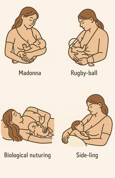 ✨ Tip: Rotate positions regularly—this prevents engorgement and helps baby fully drain the breast.