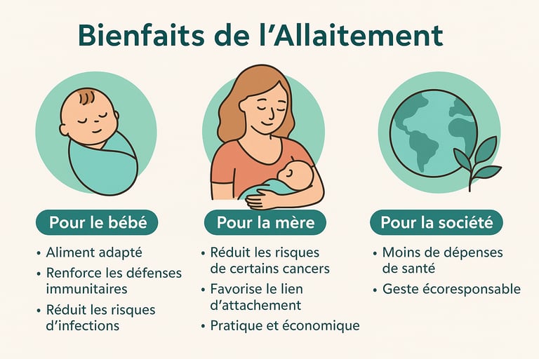 Breastfeeding isn’t just about feeding your baby—it’s about creating a unique bond 💖. In this article, you’ll discover the many benefits: for you, for your baby, and even for the planet 🌍. We’ll explore the “magic recipe” of breast milk that changes over time 🥛, the importance of skin-to-skin and that very first feed right after birth 👶, the most comfortable breastfeeding positions 🪑, and how to know if your baby is feeding well ✅. You’ll also see that breastfeeding doesn’t follow a strict schedule ⏱️—it’s all about feeding on demand. In short, this is a simple, reassuring guide to help you approach breastfeeding with more confidence and serenity 🤱✨.